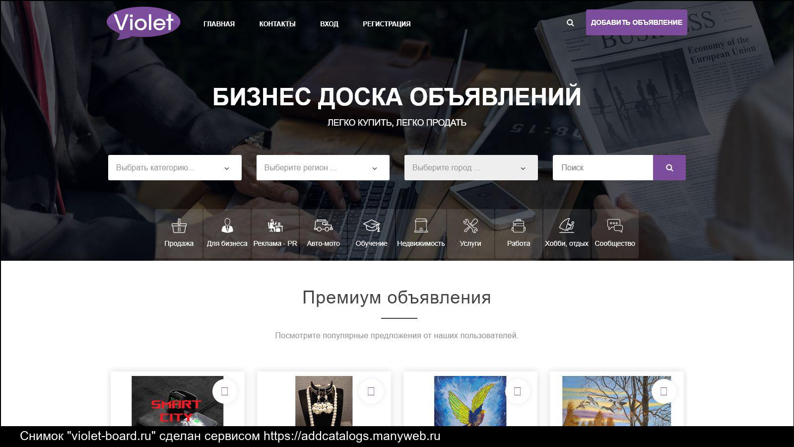 Violet » Бизнес доска объявлений для частных лиц и организаций В современном мире общение и обмен информацией становятся все более доступными. Одним из инструментов, который помогает осуществлять этот обмен, является доска объявлений. Сейчас мы хотим выделить для вас Violet уникальный сервис для размещен… Читать дальшеия объявлений, подходящий как для частных лиц, так и для организаций. Преимущества Violet: 1. Удобство размещения: Violet делает отличное предложение интуитивно понятный интерфейс для быстрого размещения объявлений. Пользователи могут с легкостью разместить объявление всего за несколько минут, заполнив необходимые поля и добавив фото. 2. Разнообразие категорий: На платформе представлены различные категории, как для частных лиц, так и для бизнеса. Это дает возможность каждому найти конкретно то, что ему необходимо: от продажи товаров и услуг до аренды недвижимости. 3. Доступность абсолютно для всех: Violet предоставляет возможность размещения объявлений включая частным лицам и компаниям. , малый и средний бизнес может с легкостью продвигать свои Товары и услуги и наращивать клиентскую базу. 4. Эффективный поиск: Наша доска объявлений оснащена комфортными фильтрами, позволяющими пользователям легко найти интересующие их продукты и услуги, что делает сам процесс поиска более быстрым и удобным. Простота в использовании: Violet предоставляет все необходимые инструменты для комфортного взаимодействия Доска объявлений сайт . Пользователь может зарегистрироваться на платформе и получить доступ ко абсолютно всем функциям, включая возможность редактирования и продвижения своих объявлений. Заключение: Бизнес-доска объявлений Violet предлагает хорошие возможности для размещения объявлений как для частных лиц, так и для организаций. Не упустите шанс эффективно продвигать свои Товары и услуги! Приглашаем вас зарегистрироваться на нашем веб-сайте и пользоваться абсолютно всеми преимуществами, которые предоставляет Сервис Violet-board.ru